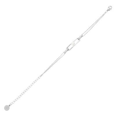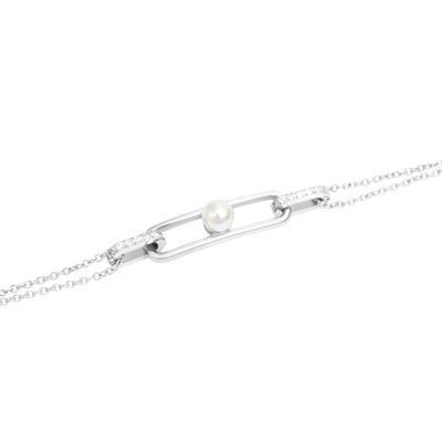 The “Apolline” bracelet in silver blends elegance with timeless femininity. The delicacy of the lustrous white glass pearl, the inlaid crystal details on the two links, and the oval-shaped pendant add a touch of luxury. Perfectly versatile, this bracelet pairs effortlessly with any wardrobe. The “Apolline” bracelet is made of stainless steel, crystal, and white glass pearl.