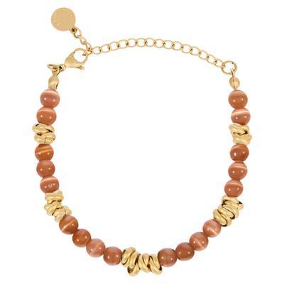 The Imogene bracelet mixes a row of colorful beads with golden ones, creating a relaxed hobo touch while keeping a refined, easygoing look. Signed with the Cacharel plate at the closing, it adds a gentle hint of color and style to any outfit. Available in off-white, navy or ocre.