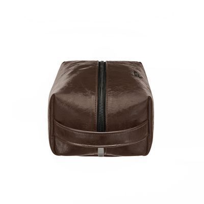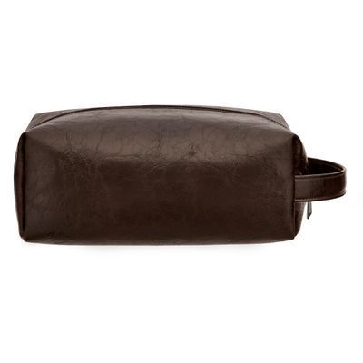 Part of our most fashion-forward line, the Hudson cosmetic bag is defined by beautifully textured, vintage-inspired surfaces in the deepest chocolate hue, luxuriously finished with gunmetal accents, from the Cerruti 1881 signature to the newly developed RR zippers. Its minimal and modern shape creates a striking contrast with the aged material finish, expressing a refined tension between heritage and contemporary design. The interior is fully monogrammed in a tone-on-tone execution, reinforcing the understated elegance of the piece. A practical handle completes the design for effortless daily use and refined travel.