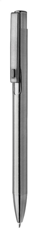 Guľôčkové pero z recyklovaného hliníka s lesklým kovovým povrchom. S modrou náplňou.