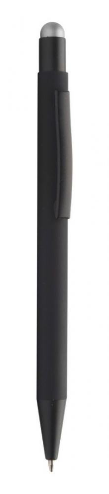 Hliníkové guľôčkové dotykové pero s pogumovanou úpravou a špeciálnym povrchom na zrkadlové gravírovanie vo farbe dotykového konca, s modrou náplňou.