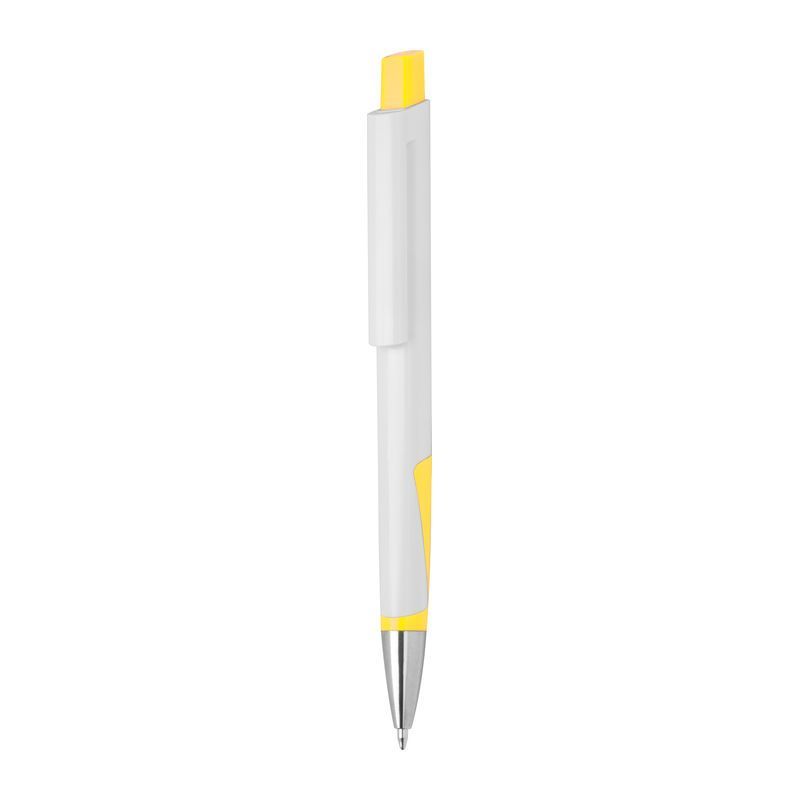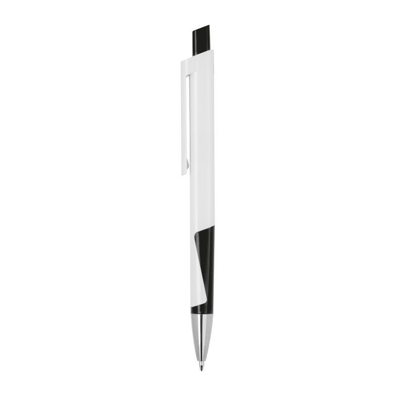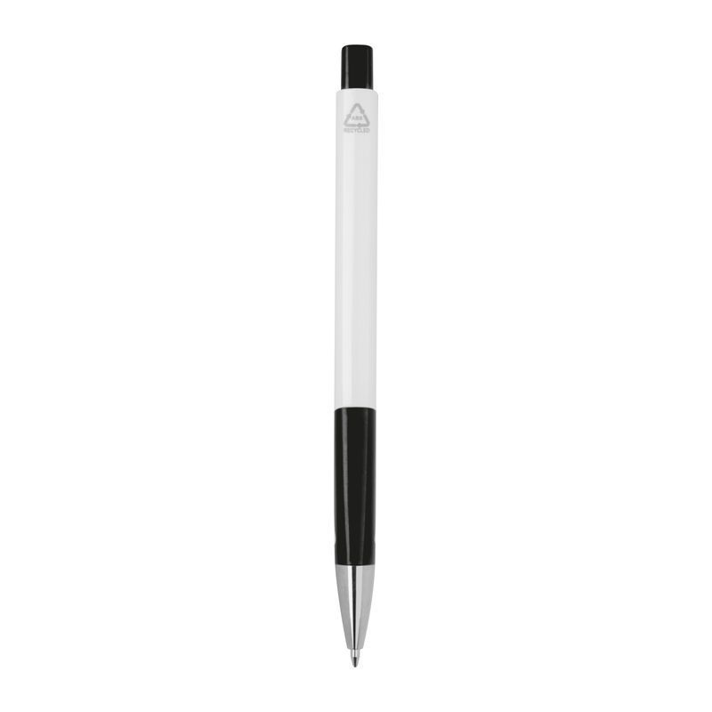 Biele guľôčkové pero z recyklovaného plastu (RABS) s modrou náplňou.