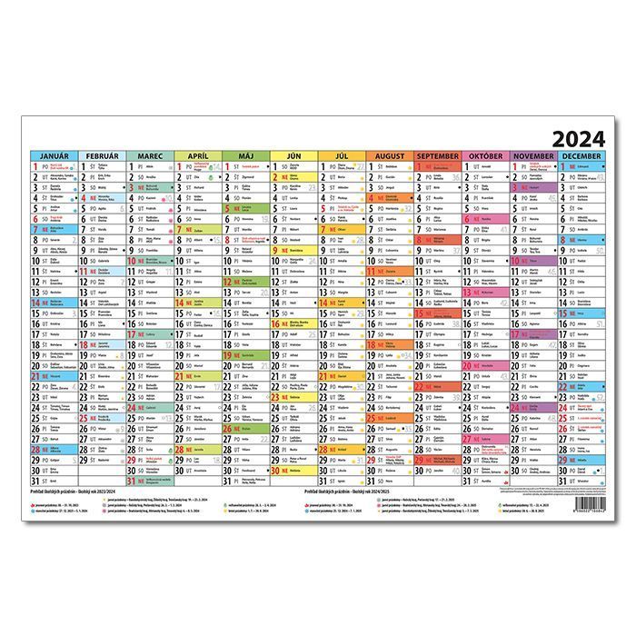 Plánovací kalendár farebný 2024
