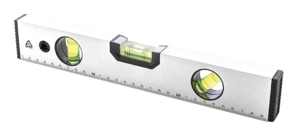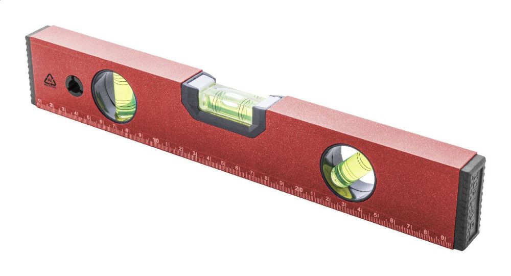 Magnetická vodováha z recyklovaného hliníka s tromi vodováhami (horizontálna, vertikálna a 45 °) a 30cm pravítkom.