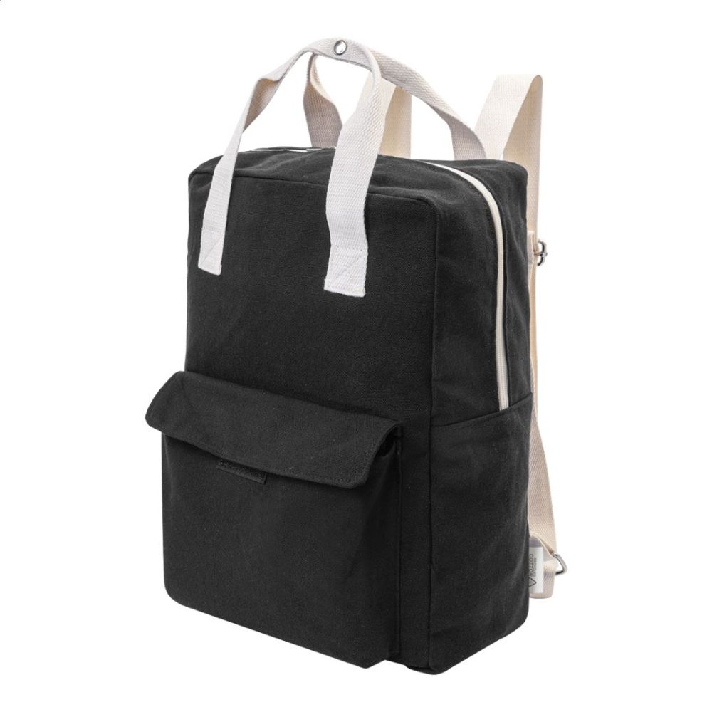 Batoh z recyklovaného plátna s hlavnou priehradkou na zips, polstrovanou priehradkou na notebook (13") a predným vreckom na suchý zips. 70% recyklovanej bavlny a 30% RPET polyesteru. S výraznou etiketou o recyklovanej bavlne.