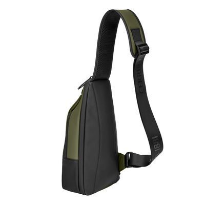 Designed with form as much as function in mind, this casual-inspired crossbody bag is offered in a refined khaki green, contrasted with all-black trims for a modern utilitarian edge. A subtle utilitarian aesthetic is expressed through its clean structure and perfectly integrated black magnetic closure, engraved with the RR signature. The single strap is adaptable in size, allowing effortless wear as a crossbody. Its compact yet organized volume is designed for daily essentials, featuring two distinct compartments for intuitive separation. Inside, the interior is fully monogrammed, reinforcing the refined identity of the line. Light and roamy in spirit, it is the perfect accessory for someone with a minimalist yet casual and modern aesthetic.