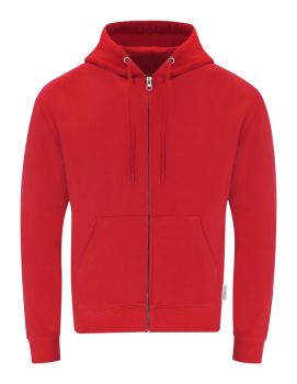 Mikina s kapucňou na zips a prednými vreckami zo 60% organickej bavlny a 40% RPET polyesteru, 280 g/m2.