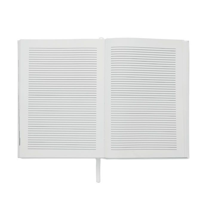 Věčný diář A5 s deskami ze 60 % z recyklovaného polyesteru a 40 % z PU. 416 univerzálních stran z recyklovaného 70g papíru (208 listů). S ladící barevnou polyesterovou záložkou.