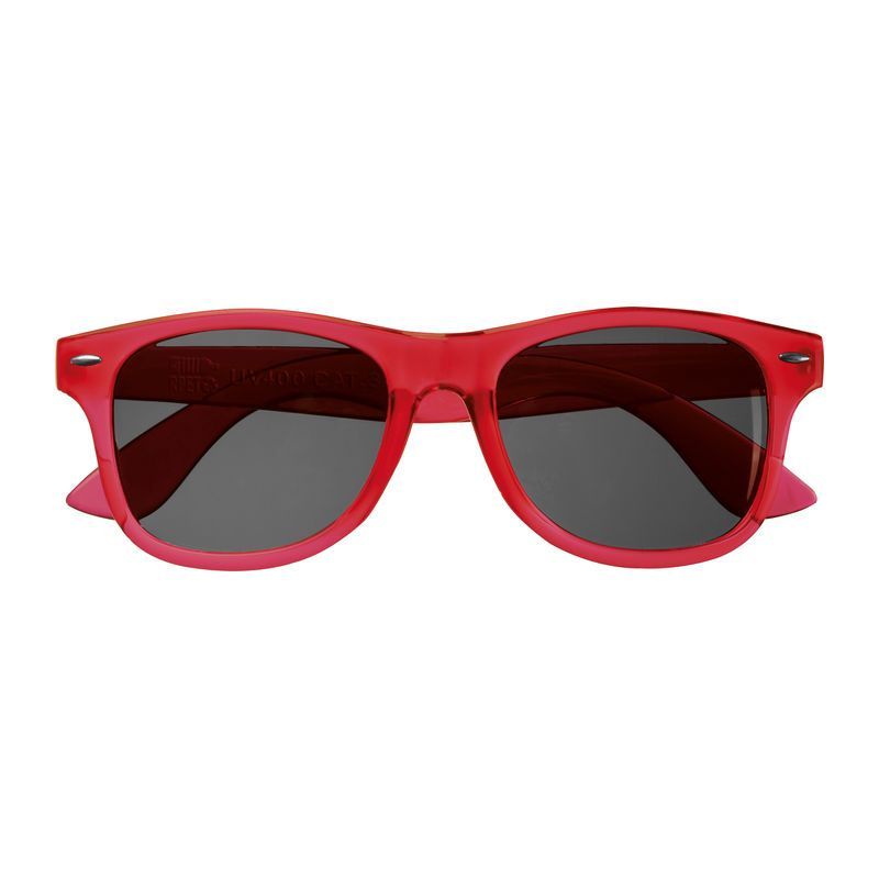 Moderné slnečné okuliare s UV filtrom 400 vyrobené z recyklovaného plastu (RPET) s priehľadnými stranicami.
