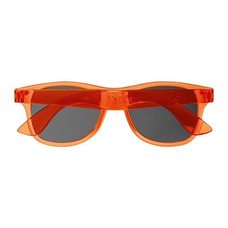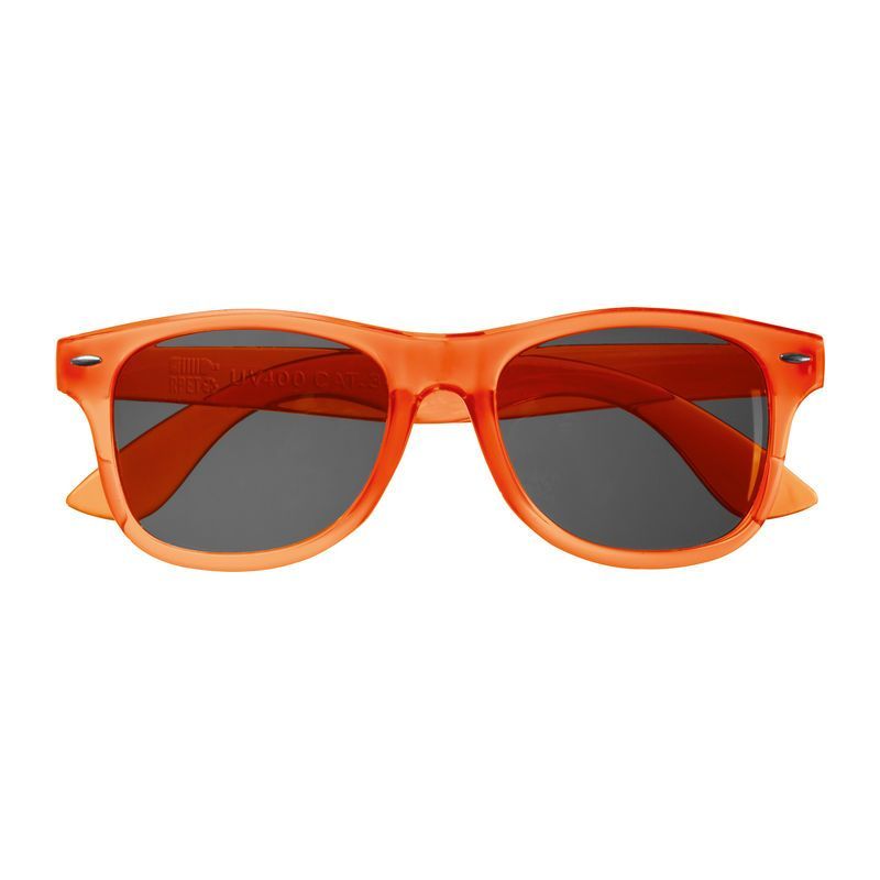 Moderné slnečné okuliare s UV filtrom 400 vyrobené z recyklovaného plastu (RPET) s priehľadnými stranicami.
