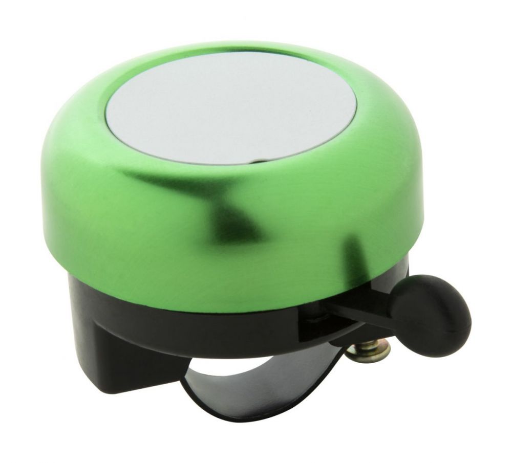 Hliníkový zvonček na bicykel so striebornou plochou.