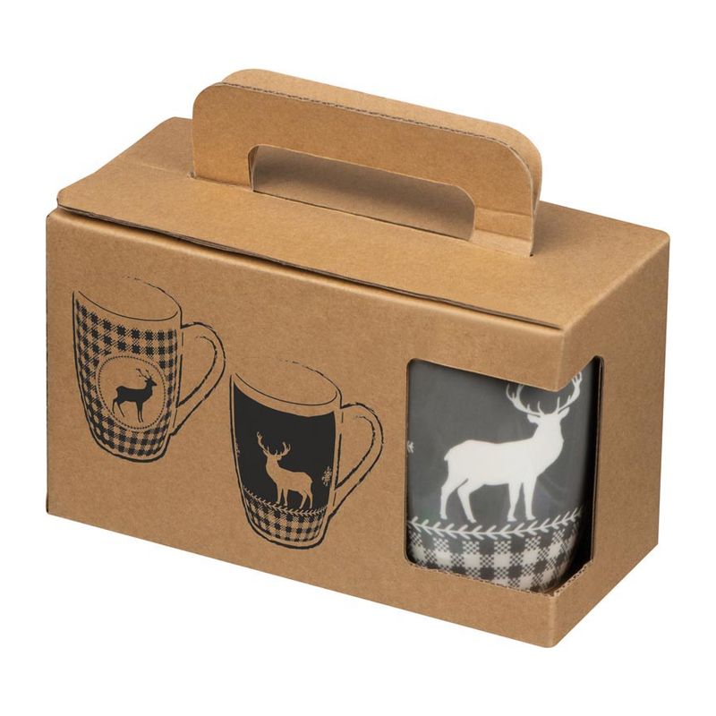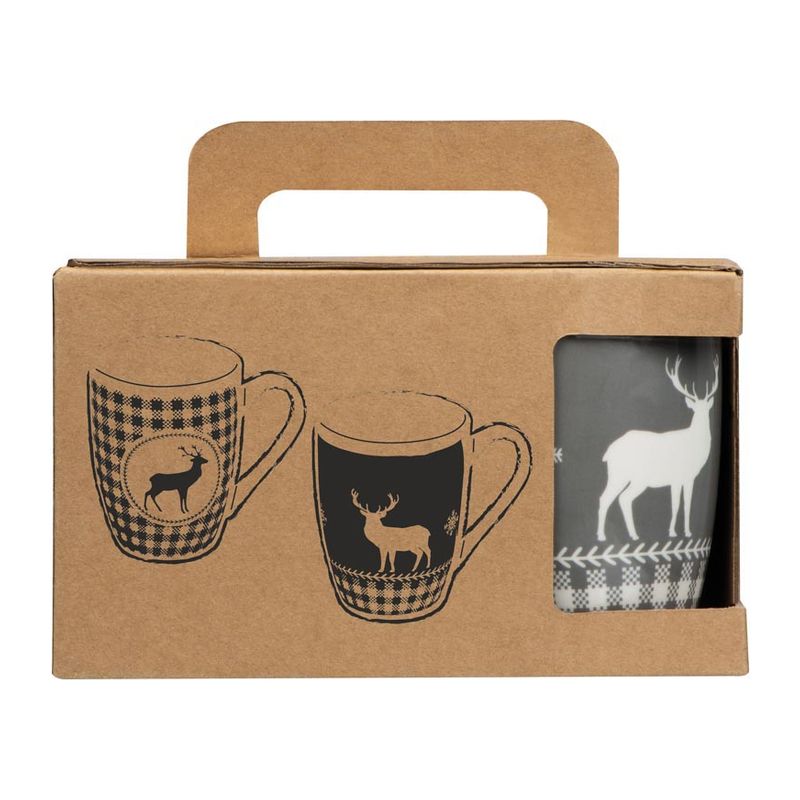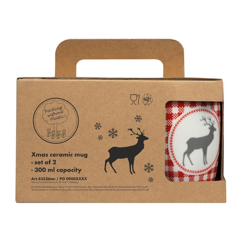 Sada dvoch keramických hrnčekov s vianočným motívom a objemom 300 ml. Dômyselné balenie vyzerá dobre a je šetrné k životnému prostrediu.