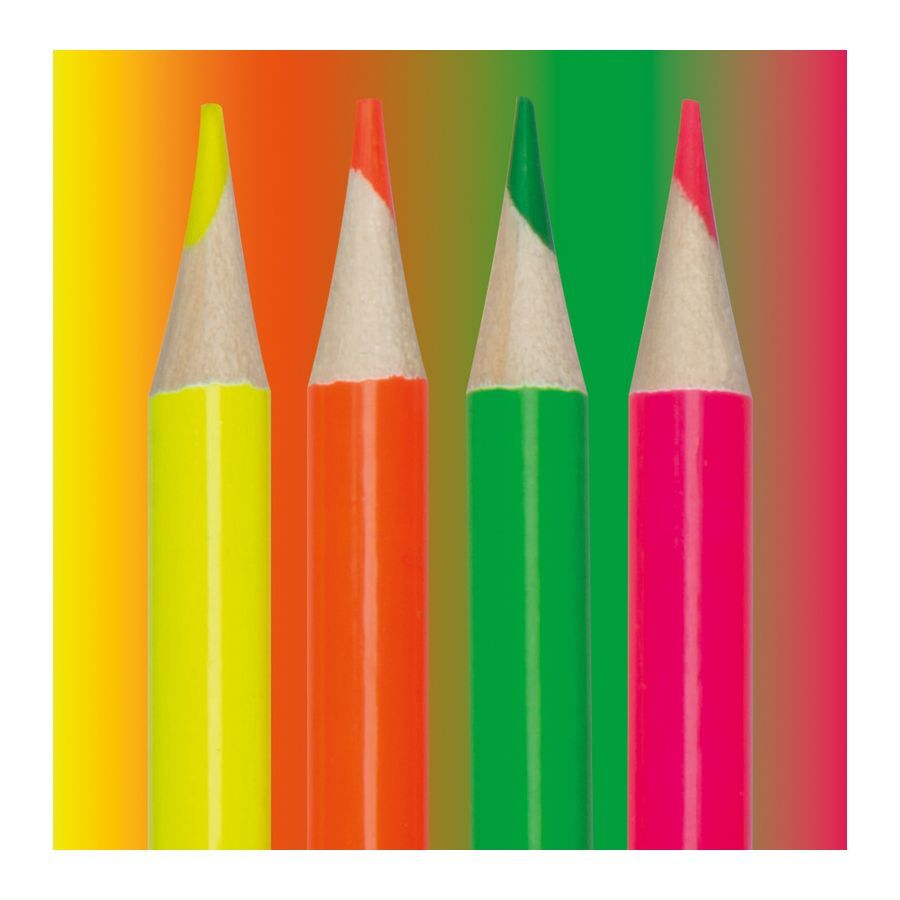 Sada 4 pastelových ceruzkových zvýrazňovačov v neónových farbách predstavuje dlhotrvajúcu a udržateľnú alternatívu k bežným zvýrazňovačom.