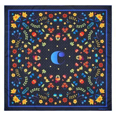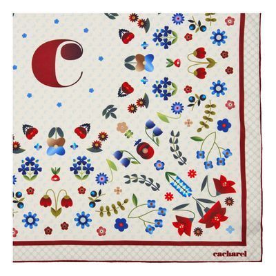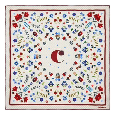 The Philomene scarf offers a contemporary, graphical take on the classical square-scarf composition, blending colorful floral elements with a clean, modern layout that feels both expressive and easy to pair. Available in navy or white, it brings a refined burst of color and pattern to the silhouette, creating a lively yet elegant accent for everyday styling.