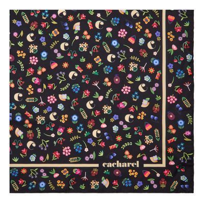 The Seraphine scarf is a playful, graphical reinterpretation of a Liberty-inspired print—an aesthetic closely tied to the Cacharel brand DNA—brought to life through vibrant, colorful elements that add a spirited touch while remaining effortlessly easy to match. Available in black, white, and bright blue, it drapes with lightness and offers a fresh, expressive accent that naturally complements a wide range of looks.