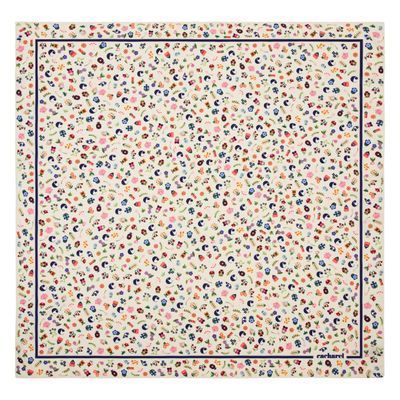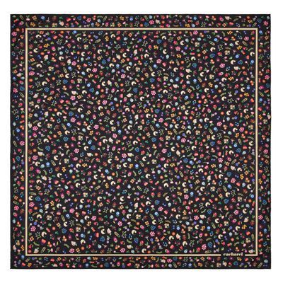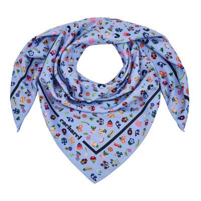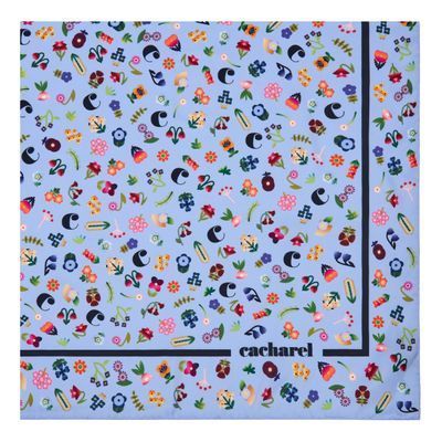 The Seraphine scarf is a playful, graphical reinterpretation of a Liberty-inspired print—an aesthetic closely tied to the Cacharel brand DNA—brought to life through vibrant, colorful elements that add a spirited touch while remaining effortlessly easy to match. Available in black, white, and bright blue, it drapes with lightness and offers a fresh, expressive accent that naturally complements a wide range of looks.