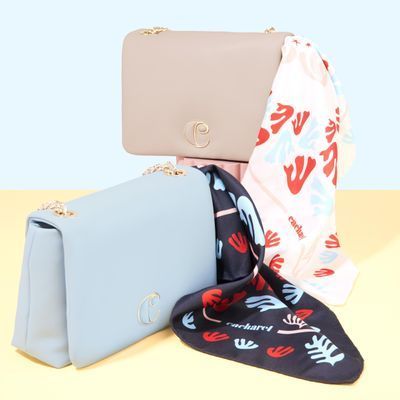The “Vivienne” scarf in off-white features an abstract design inspired by nature, with organic shapes and a color palette that is both soft and bold. A modern take on Cacharel’s brand DNA, it blends timeless elegance with contemporary artistry. Adorned with the emblematic “C” logo, this 65 x 65 cm scarf adds a distinctive touch to any outfit. Made from vegan silk (Polyester twill).