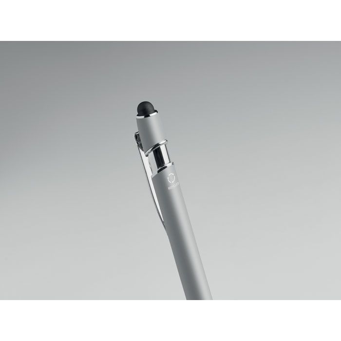 Kuličkové pero z recyklovaného hliníku, se stylusem. Modrý inkoust.