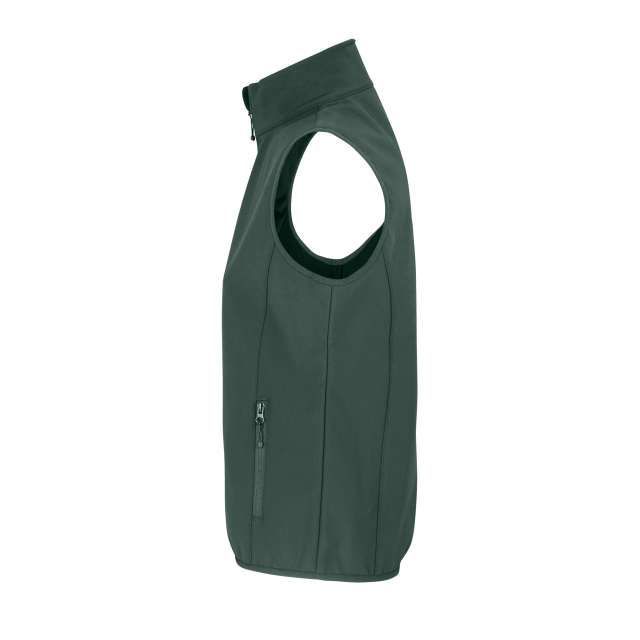 Quality -Softshell 270;94% recycled polyester - 6% elastane - 3 layers;Polar fleece lining: 100% polyester;Style -Zip opening;2 side and 1 chest zip pockets;Contrasting zip pullers;Elasticated bias binding at armholes and bottom;