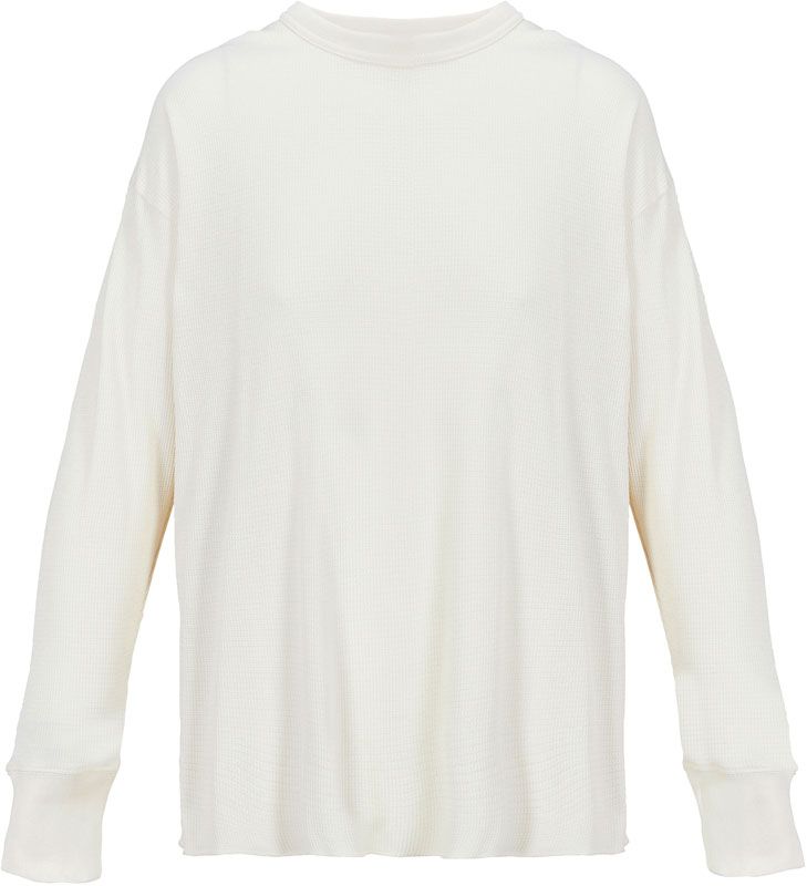 Žebrované manžety ve výstřihu a na rukávech, overlockový šev v pase, vaflový vzhled, štítek TearAway, neutrální velikostní štítek, pratelné na 30°, nelze sušit v sušičce