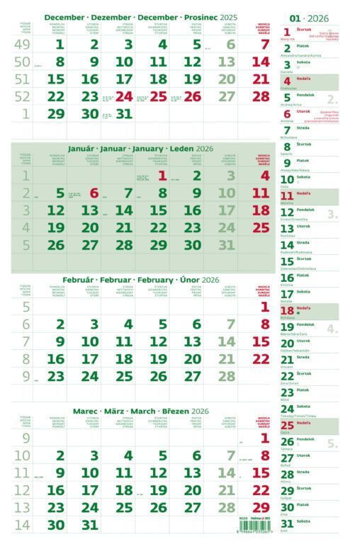 Formát kalendára: 31,5 x 49 cm