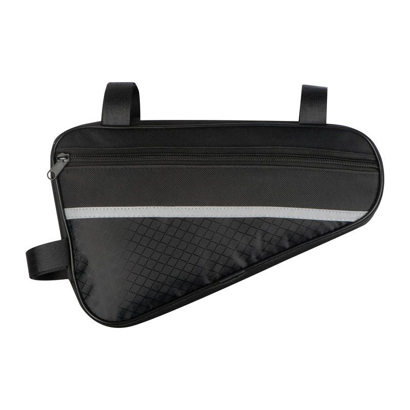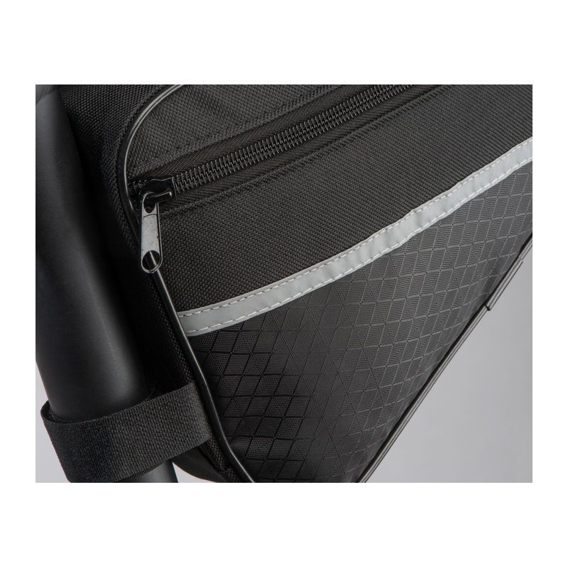 Taška na bicykel z odolného 600D polyesteru s reflexnými pásikmi. Tašku je možné jednoducho pripevniť na strednú rámovú tyč pomocou držiakov a ponúka dostatok miesta pre všetky dôležité pomôcky.
