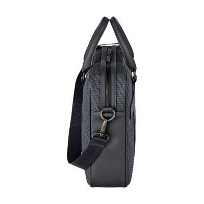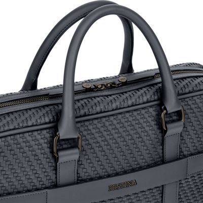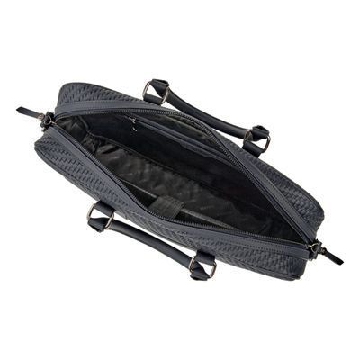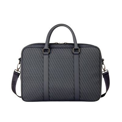 The Interlace document bag in navy brings the line’s woven-inspired texture into a classical, timeless silhouette. Crafted to resemble meticulous braiding and finished in a smooth matte, it offers a luxurious, contemporary feel enriched by signed details, including blazon-engraved zipper pullers. Inside, the organisation is ideal, featuring a dedicated laptop compartment, an inside zipped pocket, and a monogramed lining that reinforces the refined finishing. A retractable, adjustable strap signed with the logo adds comfort and practicality for daily use. Completed with sleek gun accents, the design remains resolutely chic, centered on rich texture and modern elegance.