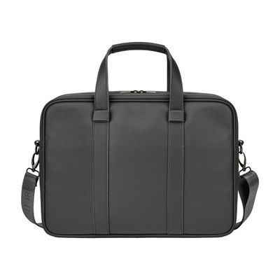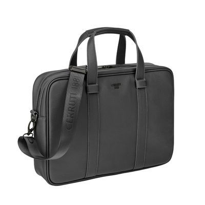 The Jefferson document bag in dark grey with gunmetal trims expresses understated elegance and a pure minimalist attitude. Its timeless, minimal shape is complemented by exhaustive functionality: a dedicated laptop compartment, a zipped inside pocket, and a monogramed lining that ensures perfect organisation for work or travel. The refined matte-grained texture offers a subtle tactility, enhanced by luxurious gunmetal accents, including the new Cerruti 1881 plate and the angular RR zipper pullers that enrich the design with quiet sophistication. A retractable and adjustable webbing strap signed with the logo reinforces this impeccably crafted, classical, and minimalist companion.