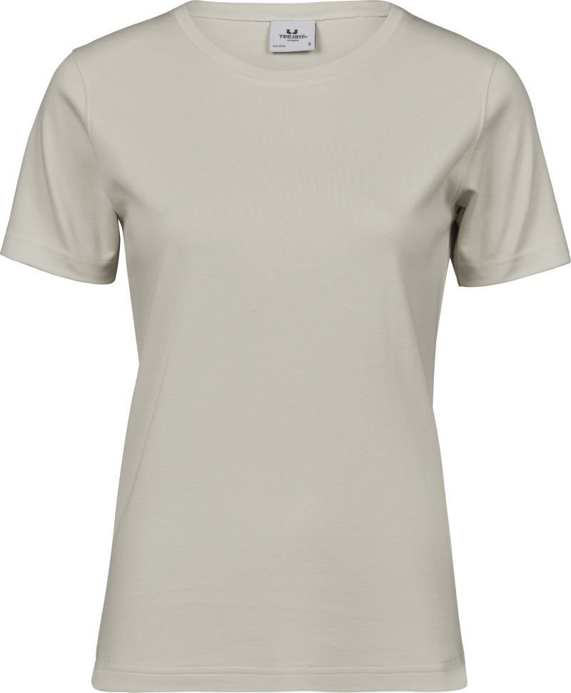 Vypasovaný střih, úzce lemovaný kulatý výstřih s elastanem, dvojité švy, vysoce kvalitní interlock z bavlny s dlouhými vlákny, pružné, práno v silikonu pro velmi hladký dotek, pratelné na 60°