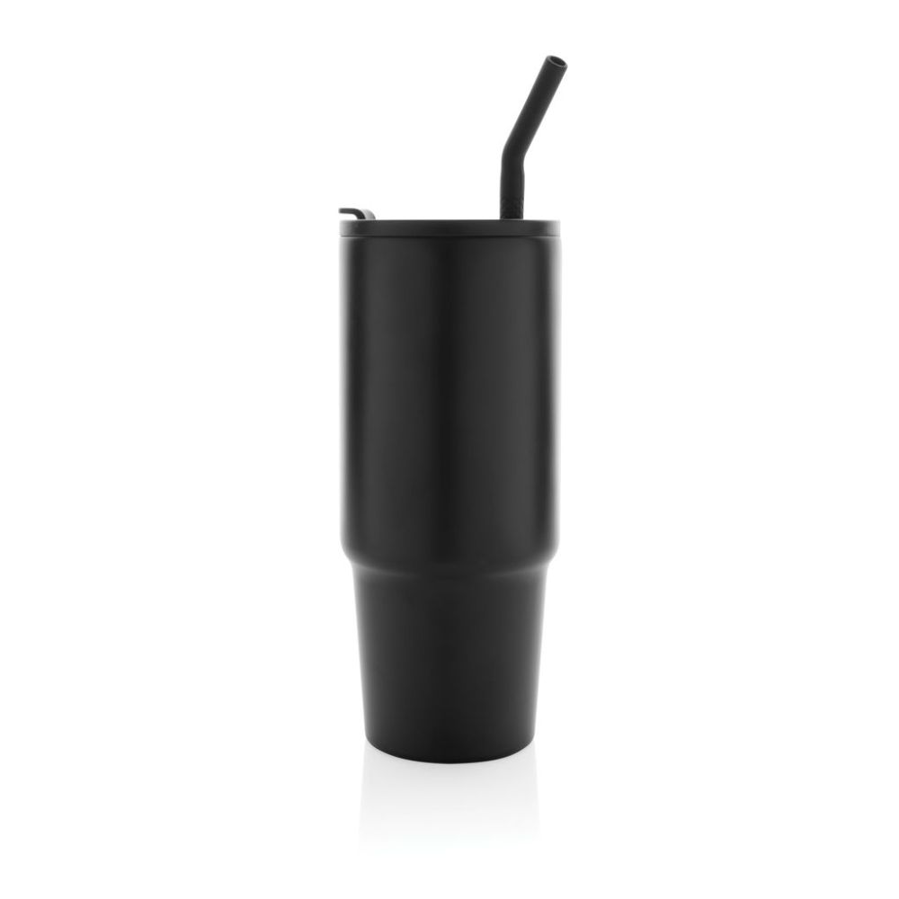 Trendy objemný termohrnček s ergonomickým uchom na pohodlné nosenie. Zúžená spodná časť pasuje do väčšiny automobilových držiakov na nápoje. Dvojstenná vákuová izolácia, objem 900 ml, viečko chrániace proti rozliatiu, kovová slamka so silikónovým koncom. Vhodné pre horúce aj studené nápoje. Otočný uzáver má 3 polohy: uzavreté, otvorené na pitie, poloha na zasunutie slamky. Odporúčané ručné umývanie. Vyrobené z RCS recyklovanej nerezovej ocele. RCS (Recycled Claim Standard) je globálny štandard, ktorý umožňuje overiť použitie recyklovaného materiálu v produkte naprieč celým dodávateľským reťazcom. Celkový podiel recyklátu podľa váhy produktu: 70%. Bez BPA.