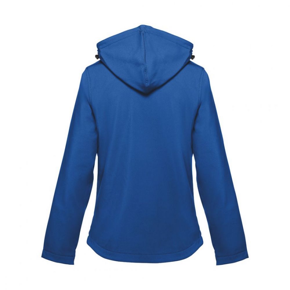 Dámska softshellová bunda s odnímateľnou kapucňou. 96% polyester a 4% elastan (280 g/m²). Vodoodpudivý povrch (trieda III). Podšívka zo sieťoviny z materiálu polar. 2 predné vrecká na zips. Diagonálne náprsné vrecko na zips. Nastaviteľné manžety s pásikom na suchý zips. Odnímateľná kapucňa so sťahovacou šnúrkou a opaskom na suchý zips pre upevnenie k golieri. Zaoblený dolný okraj zadného dielu. Veľkosti: S, M, L, XL, XXL