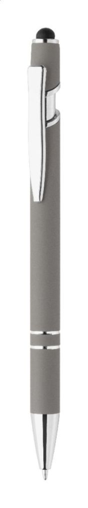 Guľôčkové pero a pero na dotykovú obrazovku z recyklovaného hliníka s pogumovaným telom a chrómovanými detailmi. S modrou náplňou.