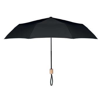 Manuální skládací 21palcový deštník, 3-dílná konstrukce, potah 190T RPET tkanina, černá konstrukce, dřevěné držadlo. Obal z tkaniny.