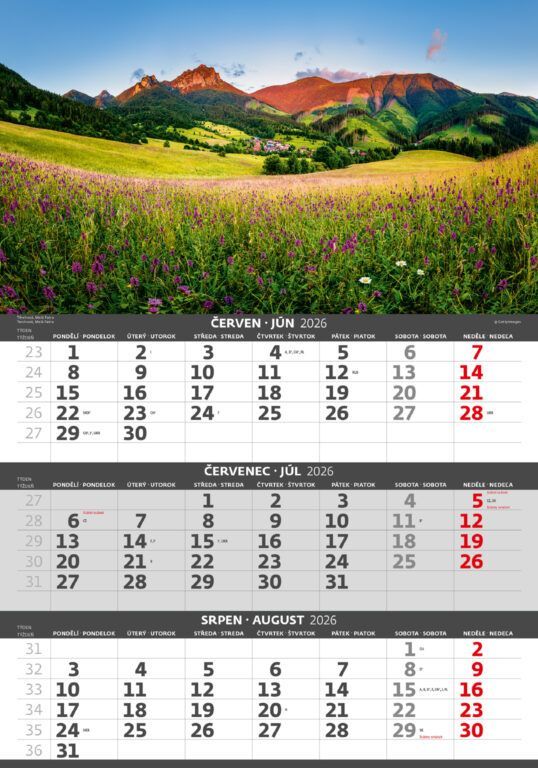 Kalendárium: české/slovenské trojmesačné so sviatkami európskych štátov (CZ / SK / A / B / D / F / H / CH / I / PL / RUS / UKR)