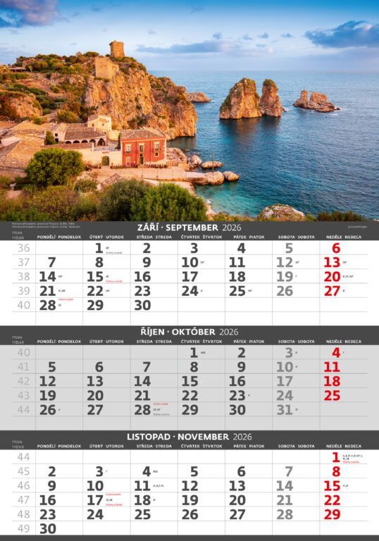 Trojmesačný kalendár Pobrežie 2026