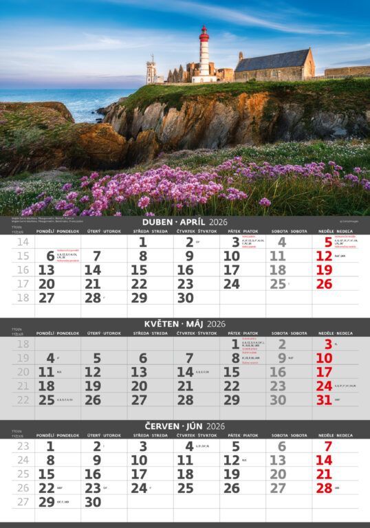 Kalendárium: české/slovenské trojmesačné so sviatkami európskych štátov (CZ / SK / A / B / D / F / H / CH / I / PL / RUS / UKR)