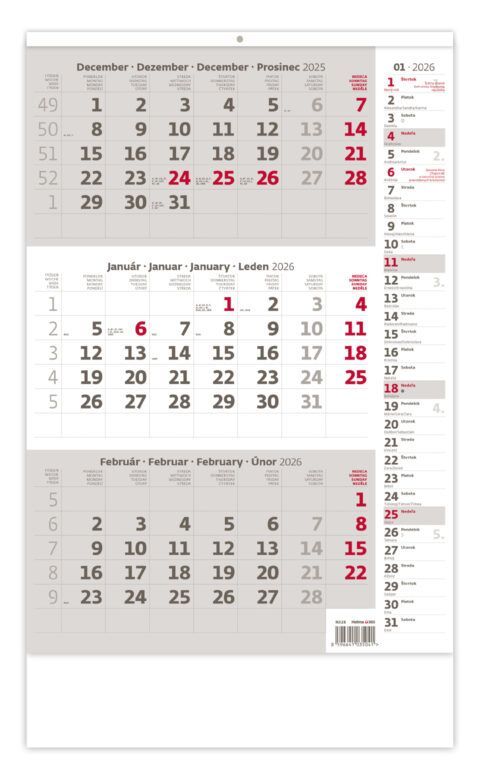 Trojmesačný pracovný kalendár šedý 2026