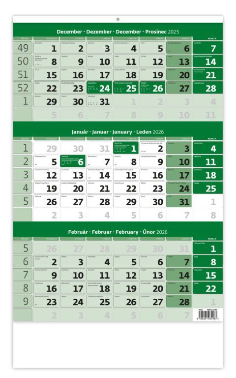 Kalendárium: slovenské trojmesačné so sviatkami európskych štátov (CZ / SK / A / B / D / F / H / CH / I / PL / RUS / UKR)
