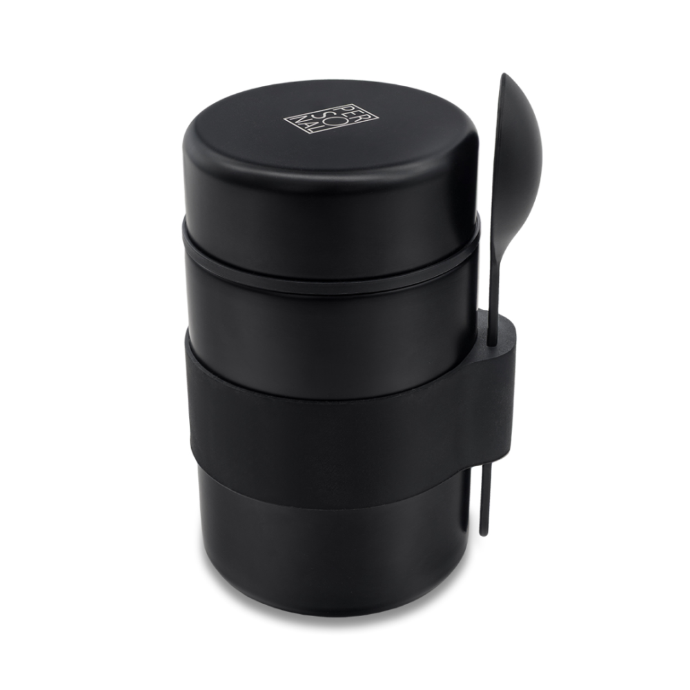 Termonádoba o objemu 460 ml s dvojitou stěnou z nerezové oceli a vnitřní stěnou z vylepšené oceli 18/8. Sada obsahuje také lžičku. Termoizolační schopnost 15 h. Jen ruční mytí.