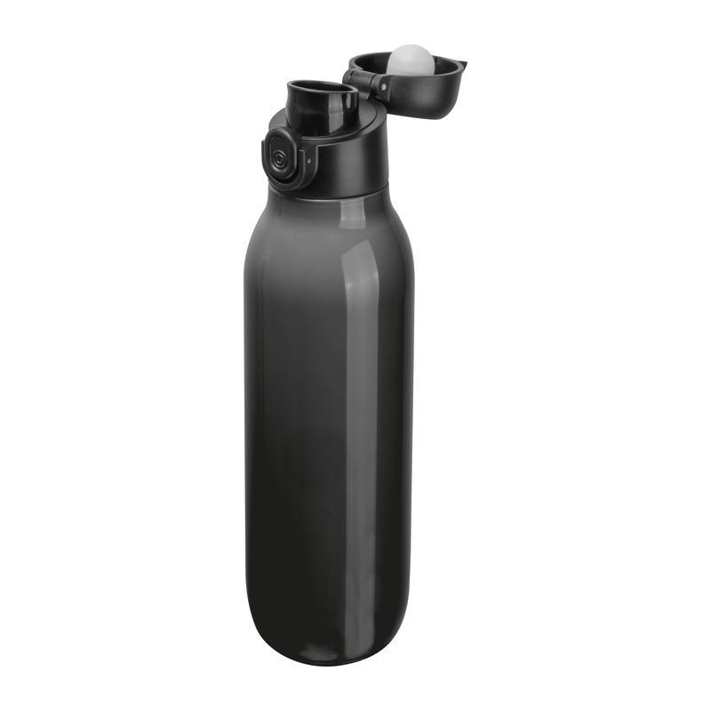 Dvojstenná vákuová nerezová termoska 500 ml, viečko na tesnenie sa otvára kliknutím.