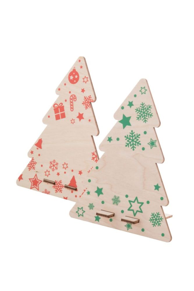 Stojanček na mobil v tvare vianočného stromčeka z brezovej preglejky. Dodávané rozložené.