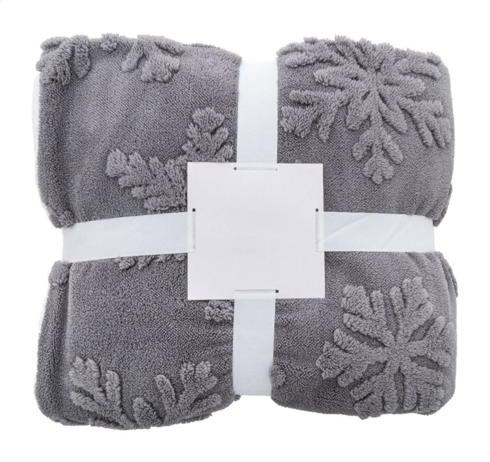 Luxusná dvojvrstvová vianočná deka z RPET s žakárovým vzorom snehových vločiek. S koralovým fleecovým materiálom RPET 260 g/m² a obojstrannou podšívkou z RPET sherpa fleecu 210 g/m². Zabalené do stuhy a tlačiteľného papierového kartónu.