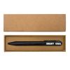 Kovové kuličkové pero s modrou náplní v kraftové krabičce. Možnost vytvoření podsvíceného loga. Tělo pera je vyrobené z recyklované nerezové oceli a obsahuje 3 vyměnitelné baterie LR41.