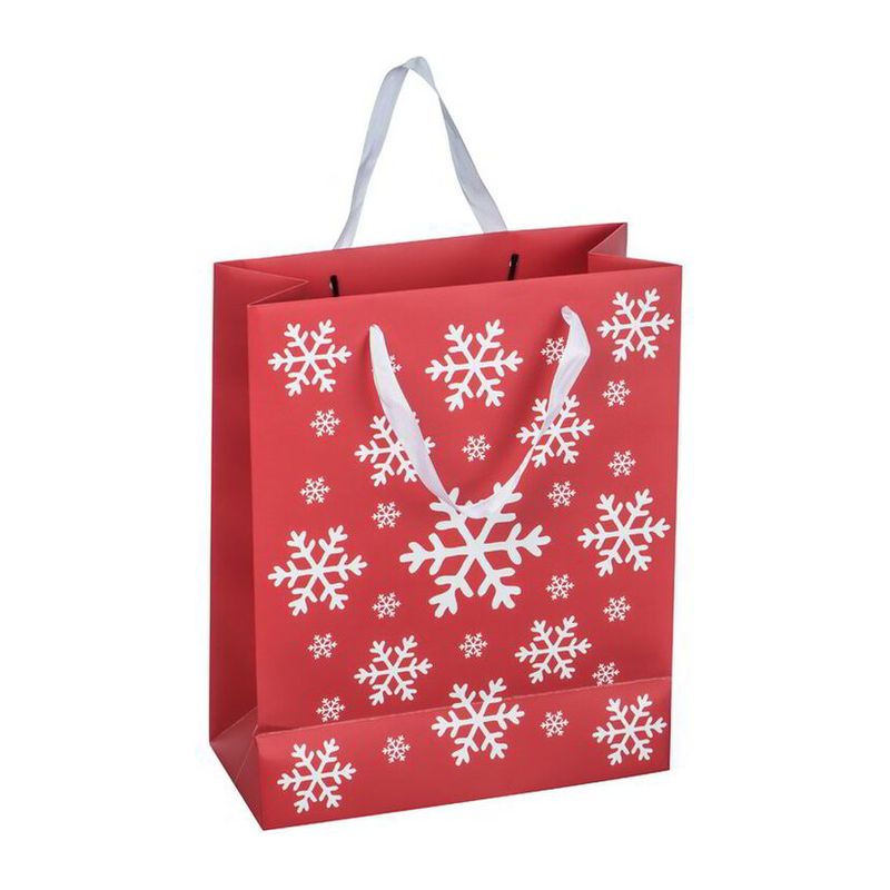 Veľká papierová vianočná darčeková taška, so vzorom snehových vločiek.