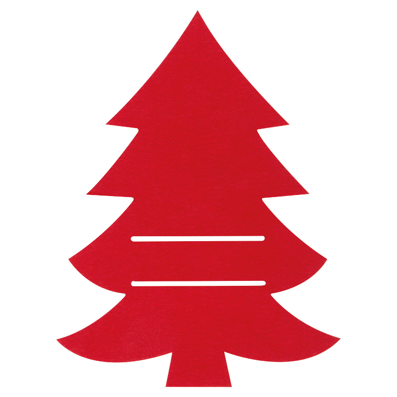 Sada vianočných plstených podložiek na príbor v tvare vianočného stromčeka, vhodná na nôž, vidličku a lyžicu.