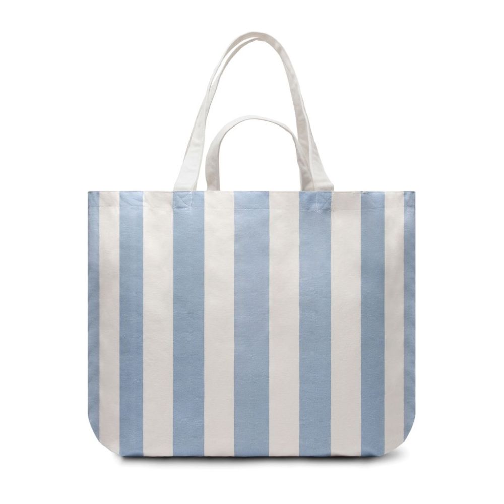 Noste všetky svoje veci s touto veľkorysou plážovou taškou. Taška ponúka ramenné popruhy aj kratšie rúčky, vďaka čomu si ju môžete bez námahy vziať so sebou, kamkoľvek idete. Navrhnuté s klasickým dvojfarebným pruhovaným vzorom na plátne 390 GSM. Certifikované podľa GRS (Global Recycled Standard), pričom certifikácia GRS zaručuje, že celý dodávateľský reťazec recyklovaných materiálov je certifikovaný. Celkový obsah recyklovaných materiálov je vypočítaný na základe hmotnosti celého výrobku. Obsahuje 69 % recyklovanej bavlny a 29 % recyklovaného polyesteru certifikovaných podľa GRS.
