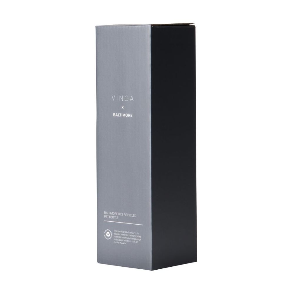 Štýlová dvojstenná vákuová fľaša je vyrobená z RCS certifikovanej recyklovanej nerezovej ocele. Je navrhnutá s minimalistickým PU držadlom a čiernymi detailmi. Nápoje udržia studené až 12 hodín a teplé až 6 hodín. Nie je vhodná do umývačky ani do mikrovlnnej rúry, iba ručné umývanie. Certifikované RCS (Recycled Claim Standard), certifikácia RCS zaručuje, že celý dodávateľský reťazec recyklovaných materiálov je certifikovaný. Celkový obsah recyklovaného materiálu je založený na celkovej hmotnosti výrobku. Tento produkt obsahuje 80% RCS certifikovanej recyklovanej nerezovej ocele.