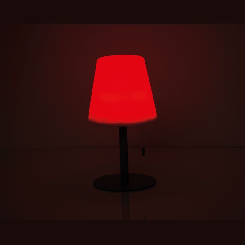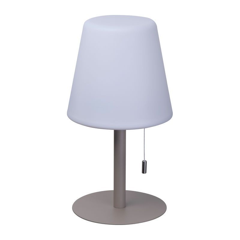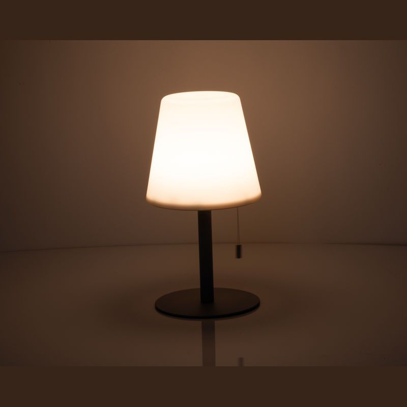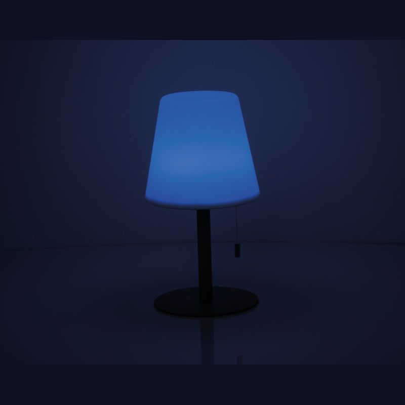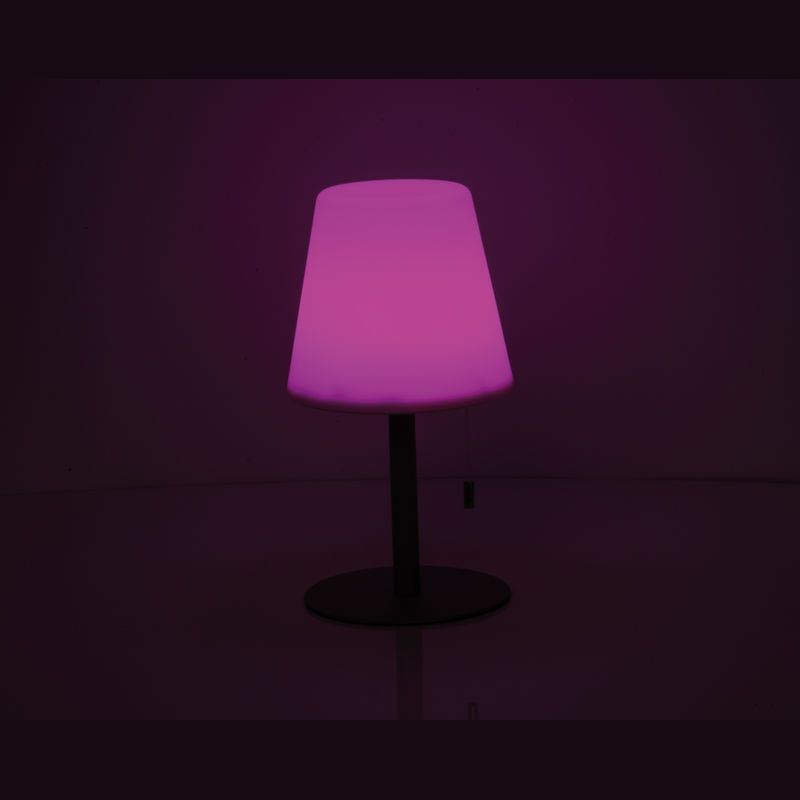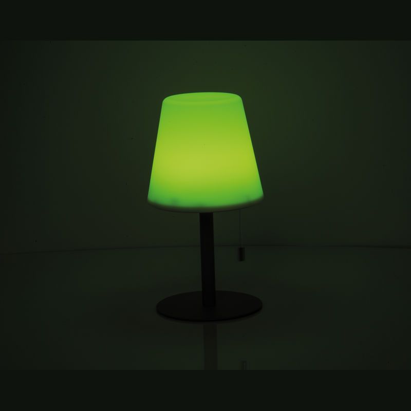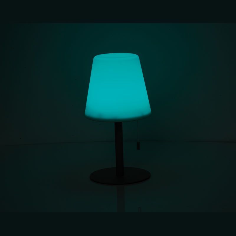 Stredne veľká vonkajšia lampa so zmenou farby a moderným dizajnom, Ø 16,5 × 30 cm, výdrž 8–10 hodín, 3,7 V, 2 × dobíjateľné batérie 1 200 mAh, tienidlo PP, kovová základňa. Vytvára útulnú atmosféru
