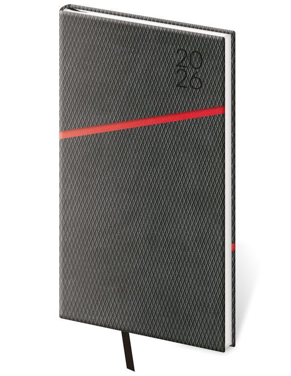 Vreckový diár Grife šedo/červený