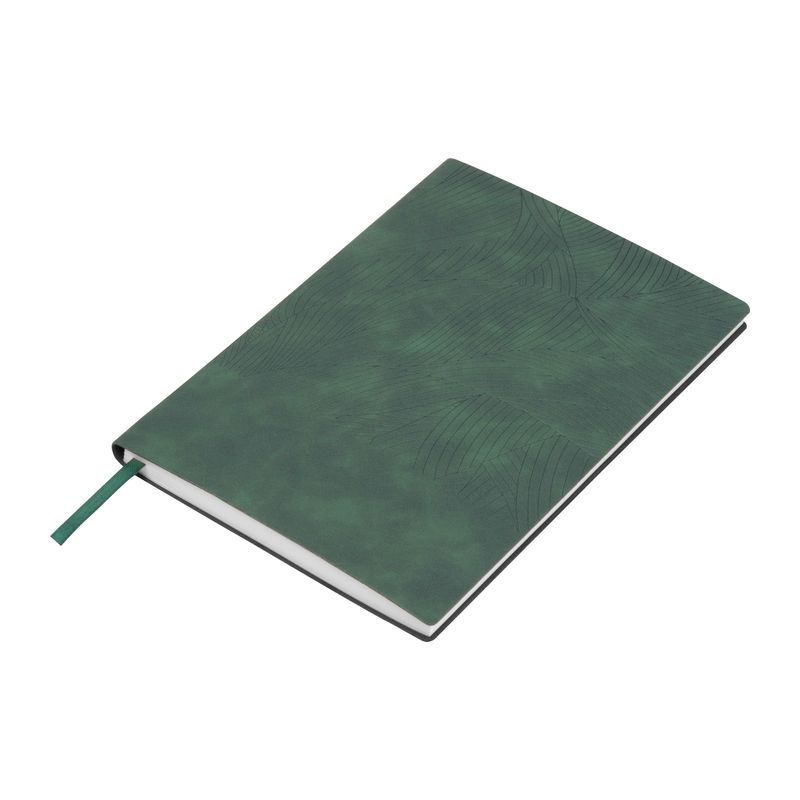 A5 zápisník s 200 linkovanými stranami (100 listov) z recyklovaného papiera a mäkkým PU obalom.